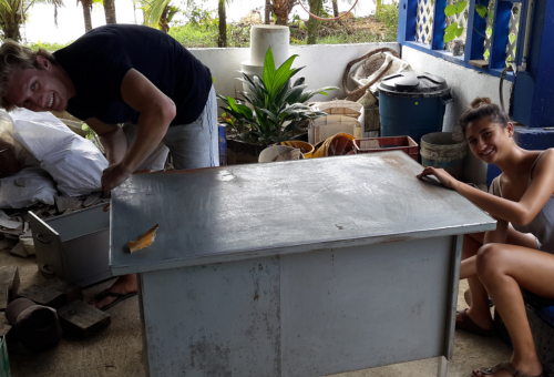 Here at Finca Flora nothing goes to waste! We love to create furniture and various installations from recycled materials including glass bottles, wood, old appliances and more.